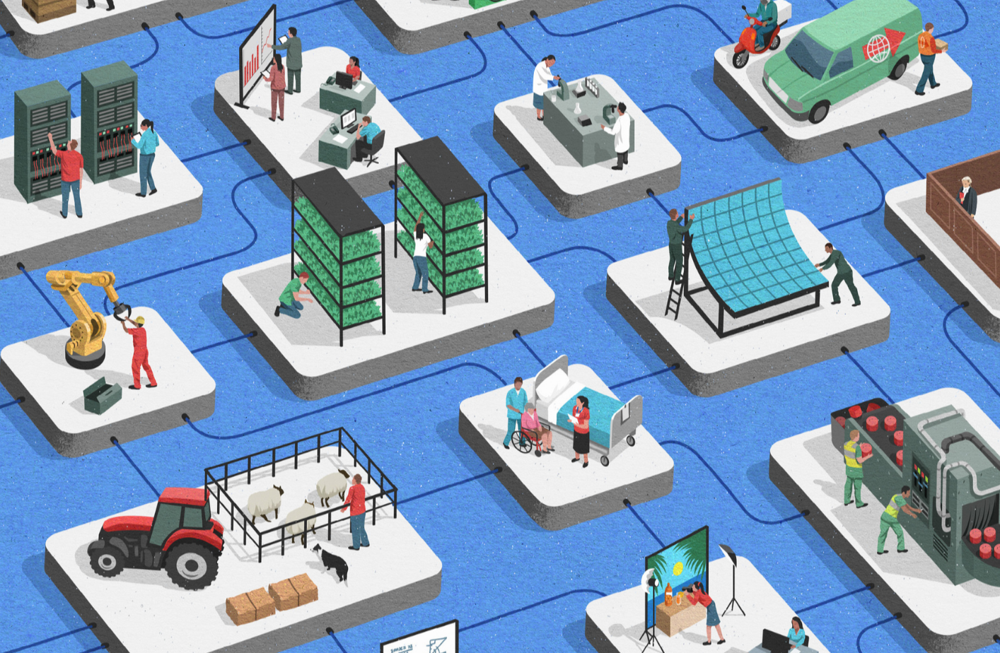 - Los roles de más rápido crecimiento en relación con su tamaño en la actualidad están impulsados por la tecnología, la digitalización y la sostenibilidad. Se prevé un crecimiento del empleo a gran escala en los sectores de la educación, la agricultura y el comercio digital.